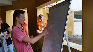 Now that the general overview is out of the way, make way now for my opinions and observations. (insert dramatic and slightly evil sounding music here) I'm constantly amazed at the energy levels of the Ukrainian staff. I really don't understand how they do it year after year. For some of them, this is only one of two or three camps this year. Dima Zaitsev told me on Monday that he didn't sleep at all Sunday into Monday. I'd be dead tired or sleeping in class by lunch time if that happened. Throughout the events, the quest, and the discussion sessions, they seem to show tireless energy. It is my secret suspicion (not so secret now), that the Ukrainians are all robots. They don't need to sleep, they just recharge from the 220V sockets in their rooms at night while scheming up new and terrifying ways to make us have fun.